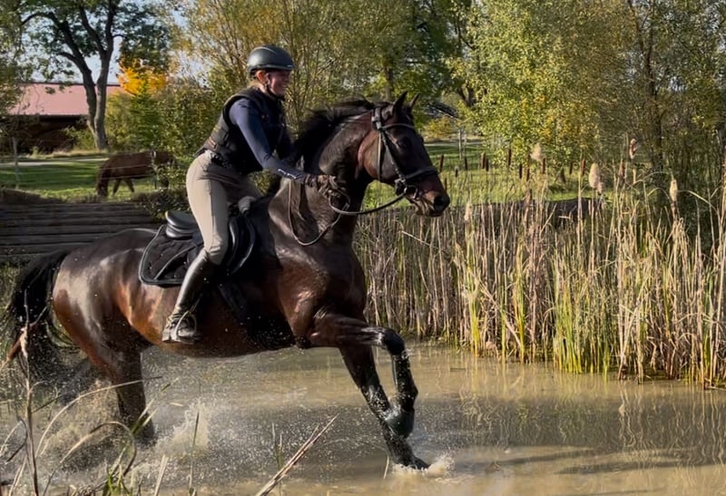 Franzi hat aktuell bereits über 20 Platzierungen in S* und S** platziert mit 71%, sowie mehrere Dressurpferde S Siege und Platzierungen mit bis zu 75%. An der Hand ist er bereits anpiaffiert. Im großen Viereck kommt er gut an und kann mit seiner Ausstrahlung beeindrucken, zudem bringt er genügend Potenzial für mehr mit. Seitdem er vier ist wurde er von der gleichen Amateur Reiterin geritten und ausgebildet, er war nie krank oder lahm, aktuelle Röntgenbilder ohne Befund vorhanden. Beim Ausreiten ist er total brav egal ob in der Gruppe oder alleine, Zuhause wurde er auf A-Niveau gesprungen, er war auch schon auf der Geländestrecke was er gut gemacht hat, dies wurde nicht weiter gefördert. Er ist sehr motiviert und intelligent, sehr leichtrittig, er ist sehr sensibel und ist daher nicht immer einfach und braucht einen Reiter der ihm viel Sicherheit gibt. Er ist kein Anfängerpferd und nicht geeignet für Angstreiter. Das Potenzial des hochveranlagten Pferdes kann die derzeitige Reiterin aufgrund von Studium leider nicht ausschöpfen, weshalb er schweren Herzens abgeben wird.