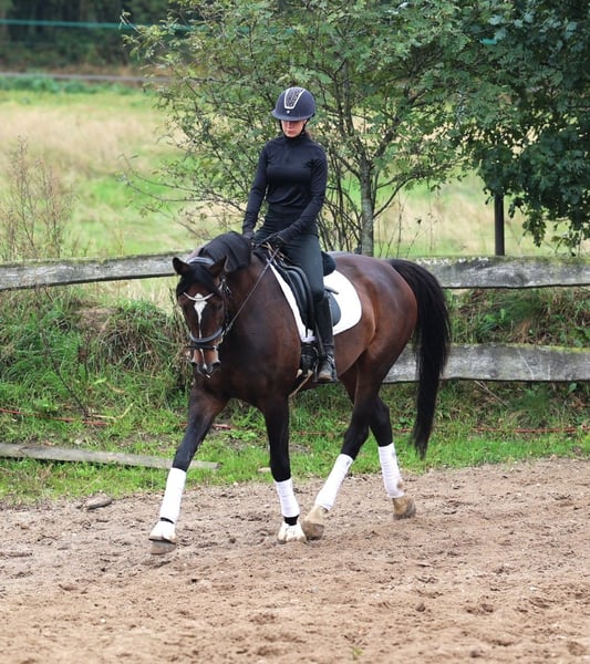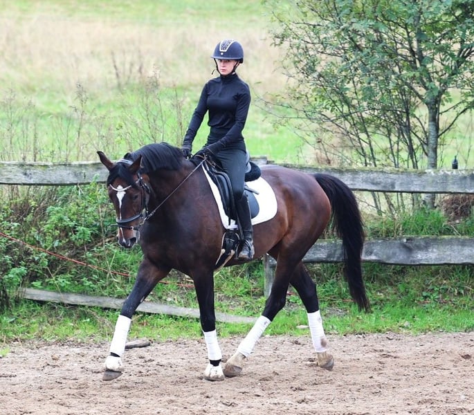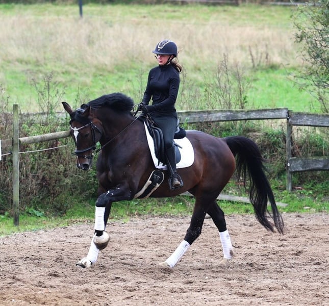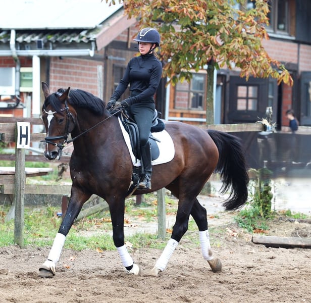 **Verkaufsanzeige: KWPN Wallach** Zum Verkauf steht ein wunderschöner KWPN Wallach, geboren im Jahr 2014. Mit einem eleganten dunkelbraunen Fell und einem Stockmaß von 168 cm ist er nicht nur ein echter Blickfang, sondern auch ein talentierter Sportpartner. Dieser Wallach hat sich bereits im Dressursport bewährt und zeigt vielversprechende Leistungen. Seine Bewegungen sind geschmeidig und ausdrucksstark, was ihn zu einem idealen Kandidaten für ambitionierte Reiter macht, die ihre Fähigkeiten im Dressurreiten weiterentwickeln möchten. Er ist brav im Umgang, gut erzogen und hat einen freundlichen Charakter, der ihn zu einem angenehmen Partner sowohl im Stall als auch unter dem Sattel macht. Wenn Sie auf der Suche nach einem talentierten Dressurpferd sind, das sowohl im Training als auch auf Turnieren glänzen kann, dann ist dieser KWPN Wallach genau das Richtige für Sie! Aufgrund von röntgenologischen Veränderungen weit unter wehrt abzugeben (keinerlei Einschränkungen ) Dieses Jahr noch M- Dressur Plaziert Bei Interesse oder weiteren Fragen stehe ich Ihnen gerne zur Verfügung.