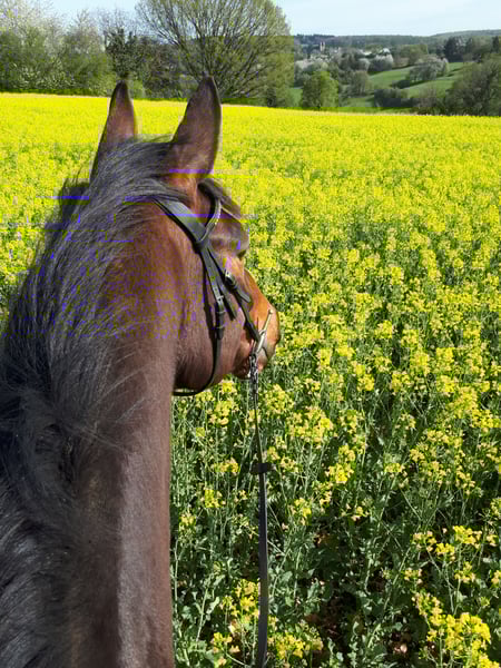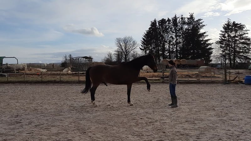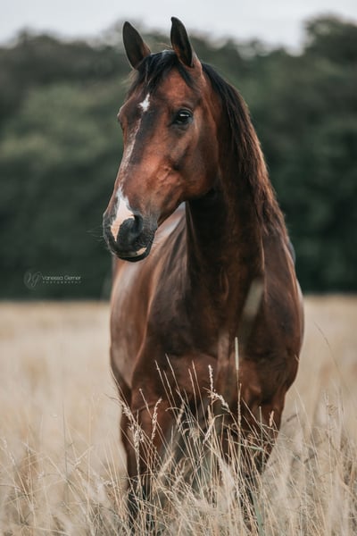 Ich suche nach einem neuen passenden Zuhause für meinen Wallach Sir Henry, da ich ihm aufgrund veränderter Lebensumstände leider nicht mehr gerecht werde. Ich habe Sir Henry nach den Grundzügen der klassischen Dressur selber ausgebildet. Er ist sehr fein zu reiten und möchte auf dem Reitplatz gefallen. Er kennt jegliche Seitengänge im Schritt und Trab auf feine Hilfen. Er ist sehr fleißig, lernbereit und stets lauffreudig. Ebenso im Gelände hat er ordentlich Go und ist dabei aber jederzeit händelbar. Er geht alleine als auch in der Gruppe ins Gelände. Aufgrund seiner Abstammung ist er auch fürs Springen geeignet und zeigt dabei große Motivation. Springen habe ich aufgrund fehlenden Equipments nicht weiter verfolgt, bis auf Cavaletti Hüpfer. Sir Henry ist temperamentvoll und daher nicht für Anfänger geeignet. Neben Reiten kennt er auch Bodenarbeit/Longieren am Kappzaum, Handarbeit an Trense oder Kappzaum, Freiarbeit, Spaziergänge sowie Zirzensik. Er ist ein aufgeschlossenes und sensibles Pferd und ist gut erzogen. Bei neuen/fremden Personen testet er das gerne mal aus. Wer ihm eine klare Führung gibt, hat ihn für sich gewonnen. Sir Henry ist Barhufer und stand bis vor kurzem in einem Offenstall mit 12 Pferden. Dort war er Herdenchef und machte den Job gut. Seit kurzem steht er in einer kleinen Gruppe in einem anderen Offenstall. Er ist sozialverträglich, spielt und schmust gerne mit seinen Artgenossen. Sir Henry ist schmiede- und verladefromm, regelmäßig geimpft und entwurmt. Die Zähne wurden das letzte Mal im Juli professionell gemacht. Ich verkaufe mein Pferd weit unter Wert, da er letztes Jahr über einen langen Zeitraum mit Magengeschwüren am Magenausgang zu tun hatte. Aufgrund der vergangenen langwierigen Erkrankung steht er aktuell körperlich nicht so gut da, hat abgenommen und ist wenig bemuskelt (die 2 letzten Bilder). Dennoch ist er gut drauf, fit und munter. Da ich wenig Zeit habe und ihm die Zeit zur Regenation geben wollte, habe ich ihn seit Juni nicht mehr geritten. Er wurde vor kurzem erstmals wieder geritten und war höchst motiviert und zufrieden, dass er wieder arbeiten darf. Sobald er wieder aufgebaut und vollumfänglich einsatzbereit ist, ist er ein toller Freizeitpartner und Reitpferd. Für seine nachhaltige Genesung ist ein passendes und liebevolles Zuhause ausschlaggebend, wo er zur Ruhe kommen kann (die Ruhe fehlte ihm bis zum Stallwechsel im Herbst) und keinem Stress ausgesetzt ist. Zudem ist er leichter Sommerekzemer. Je nach Sommer reicht ein Öl in Schweifrübe und Mähnenkamm alle 2-3 Tage oder bei stärkerem Juckreiz hilft ihm eine Ekzemerdecke, womit er super klar kommt. Seine Fütterung habe ich auf Sommerekzemer sowie magenempfindliche Pferde entsprechend angepasst. Ich wünsche mir ein liebevolles Zuhause im Offenstall in einer überschaubaren kleinen Herde mit ausreichend Fress- und Liegeplätzen. Keine Boxenhaltung. Ich gebe Sir Henry mit vollem Equipment ab (u.a. Kieffer Lousitano Dressursattel, Trense, Hufschuhe, Decken, Futter, Medikamente, etc.). Sir Henry hat volle Papiere (Equidenpass + Urkunde). Probereiten nur, wenn alles passt. Kein Händler oder Schulbetrieb. Keine Turniere. Platz vor Preis! Mir ist wichtig, dass Sir Henry in beste Hände kommt. Bei Interesse freue ich mich über eine kurze Vorstellung Ihrer Person sowie Beschreibung der Haltungsform.
