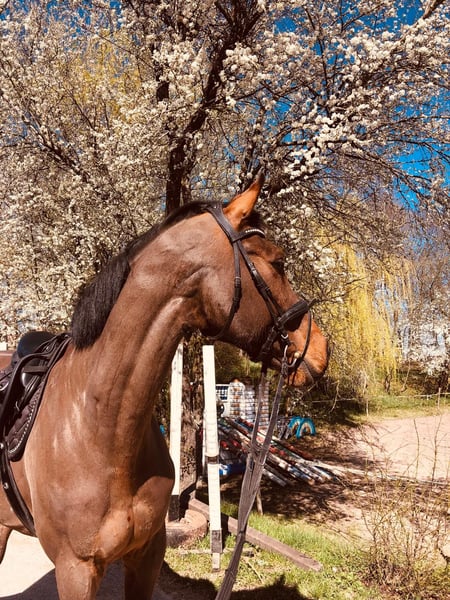 Maestro di scuola di qualità, con esperienza e cuore Cavallo da salto S esperto e insegnante In vendita un castrone di 14 anni, di Eldorado vd Zeshoek x C-Indoctro (circa 174 cm), con successi fino a M** (1,35 m) e partecipazioni in classe S. Controllo sanitario attuale senza difetti Ottima formazione – cavallo da scuola di esperienza e da salto, vincitore in M**, corso in S Passo laterale e galoppo esterno sicuri Eccellente lavoro con i bastoni e nel gymnastics Partner assolutamente affidabile e attento È un vero booster di fiducia, che trasmette al suo cavaliere sensazione, sicurezza e routine – ideale per fare il prossimo passo nel salto ostacoli. Originariamente selezionato per competere in categoria forte, porta con sé molta qualità e potenzialità. In casa si presenta costante, affidabile e con grande visione d’insieme – le migliori condizioni per sviluppare ulteriormente questo potenziale anche in gara. In competizione si comporta attualmente non sempre in modo facile. Si cerca una famiglia esperta, amorevole e a cinque stelle, che possa continuare a valorizzarlo e a sostenerlo. Per ulteriori informazioni, contattare privatamente.