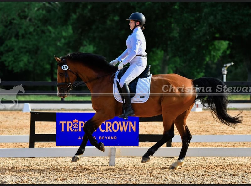 Benny is an expressive gelding that has been retired from the show ring with minimal riding for about a year now. He was purchased in 2022 as a dressage horse after being pushed a bit too far in the jumper ring and picking up some bad habits in previous hands. I achieved scores with him towards my bronze medal at second and third level dressage. Benny is not your child’s next show horse— he has a rearing issue and can be reactive to other horses coming toward him under saddle. He is an extremely sweet horse, wants to be your best friend, perfect for the farrier, loads easy, and an easy keeper, but he is only for experienced hands. He was imported from England as an 8 year old. More videos on request, and he can be tried in Milton, Ga by the right people.