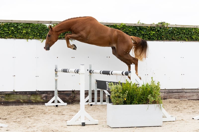 The three-year-old gelding Snelle is a beautiful horse with a calm temperament. He is cautious when jumping. His sire, Poker de Mariposa, made his 1.50m debut with Willem Greve on May 5th in Mannheim. As a son of Nabab de Reve out of the 1.60m Grand Prix mare Ilena de Mariposa (Berlin), he comes from a very interesting pedigree. His granddam is the top show jumping mare Flora de Mariposa (For Pleasure), who was highly successful for many years with Penelope Leprevost (FRA). His dam, Nesquick, descends from Tallmann TN (1.50m jumper) out of Flicka Nieuwmoed (Carambole).