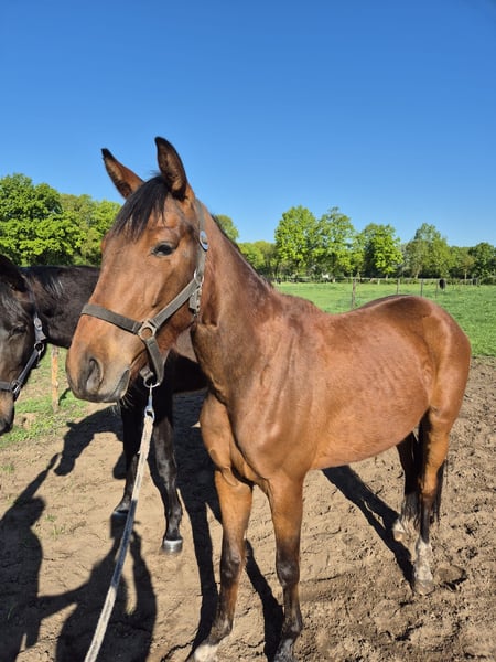 Surprising Dream is een super nuchtere ruin. Hij is momenteel 3,5 jaar en is begin december weggebracht om zadelmak te maken. Dit pakt hij goed op. Super nuchter en niet bang. Super braaf bij de smid en in de hand. Rechtstreeks van de fokker en goede Xrays. Naar schatting zal het paard tussen 1.60 en 1.65 groot zijn momenteel. Moeder is ook in ons bezit. Heeft dezelfde grootmoeder als de olympische Jagerbomb van Becky Moody. https://www.horsetelex.nl/horses/pedigree/1780860/haya