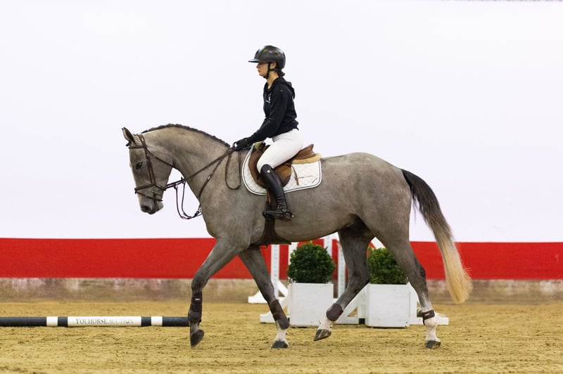 https://youhorse.auction/en/auction/Soliman-JAGGER-SRK-x-ORTHOS Light-footed grey with balance, a calm mindset and rideability Soliman has been under saddle for four months and is ready for training courses. He is a beautiful grey, light-footed and already shows good balance at a young age. He has a kind, level-headed character, is easy to work with and suitable for multiple riders. He offers a pleasant canter, changes easily and is comfortable to ride. A nice amateur horsewith overview and attitude. Sire Jagger SRK (Untouchable x Hors La Loi II) competed at 1.45m level and is KWPN D-OC. Through Untouchable(1.60m GP) and Hors La Loi II (1.60m GP), he transmits scope, reflexes and a modern sport type. Damline The dam is Ilize (Orthos), descending from a strong KWPN family with sport across generations. Orthos is known for passing on toughness and attitude. The second dam Elize (Carolus II) brings proven Holsteiner influence; Carolus II competed at 1.60m. The third dam Wendela (Indorado) is Elite PROK EPTM(spr); Indorado is a proven sire of scope and attitude. Further in the family we find sport horses such as: – Fusion (Corland), international 1.45m – Cynthia (Odermus R), 1.30m – Agnetha (Orame), 1.10m – Eduard (Odermus R), Advanced (USA/UK) A consistent performance family with results from 1.10–1.45m, backed by influential sires Untouchable, Hors La Loi II, Carolus II and Indorado.