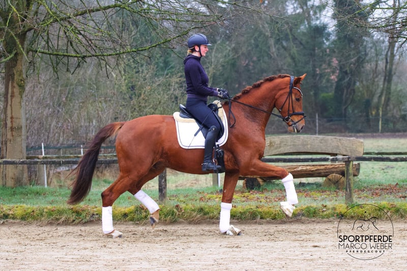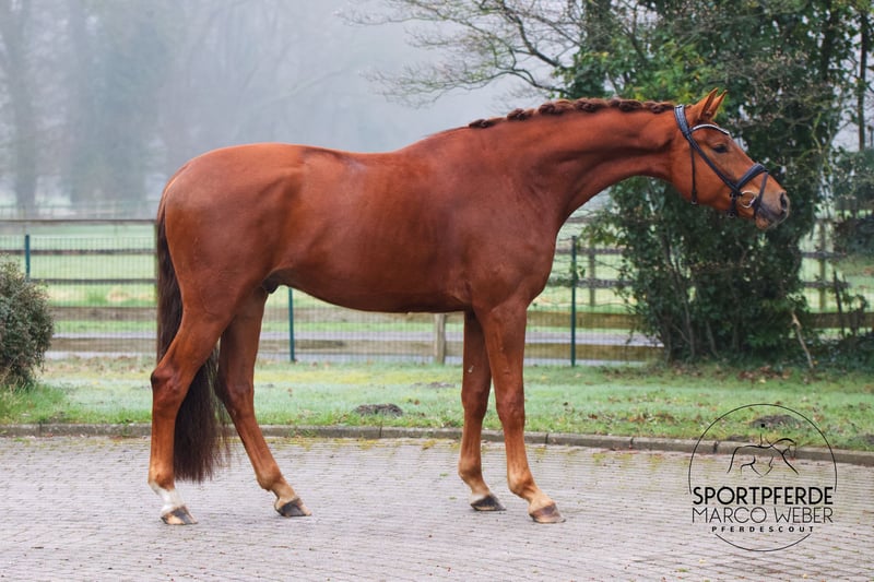 KWPN Wallach | *2022 | ca. 1,77 m ⚜️ Vaderland – Charmeur – Santano ⚜️ 💎 Traum-Wallach mit überragender Rittigkeit 💎 Ein absoluter Blickfang: Dieser großrahmige, moderne Sohn des Vaderland begeistert mit enormer Ausstrahlung, viel Schick und einer Präsenz, die fast an einen Hengst erinnert. Seit ca. 4 Monaten schonend in Arbeit, zeigt er sich unter dem Sattel bereits sehr abgeklärt, lernwillig und stets mit positiver Einstellung. Aktuell auf solidem Dressurpferde A-Niveau ausgebildet, überzeugt er mit drei überdurchschnittlichen Grundgangarten, einem fleißigen Hinterbein und einer natürlichen Rittigkeit. 👉 Noch nicht öffentlich vorgestellt – somit ein unverbrauchtes Nachwuchspferd mit viel Potenzial für die weitere Förderung. 🧡 Charakterlich ein absoluter Schatz: Ein Top-Charakter, der sich von nichts aus der Ruhe bringen lässt – egal ob im täglichen Handling oder unter dem Sattel. Ein Pferd, das Sicherheit gibt und einfach Spaß macht. 🐴 Gesund & natürlich aufgestellt: Läuft aktuell ohne Eisen und zeigt sich dabei absolut unproblematisch. ✨ Besondere Highlights: • Seit ca. 4 Monaten unter dem Sattel und sehr positiv in der Entwicklung • Noch nicht öffentlich vorgestellt – unverbrauchtes Nachwuchspferd • Überdurchschnittliches Exterieur & beeindruckende Größe • Korrekt und pferdegerecht ausgebildet • Absolut unkompliziert im täglichen Umgang • Leistungsbereit mit klarer Perspektive für das große Viereck • Sehr guter TÜV inkl. Rücken liegt vor ✅ Dieser Wallach wurde als Fohlen erworben und wird direkt vom Aufzüchter verkauft – eine seltene Gelegenheit für alle, die ein großrahmiges, talentiertes Nachwuchspferd mit Zukunft suchen. 📍 Standort: Rastede 📞 Weitere Informationen: +49 173 3013499