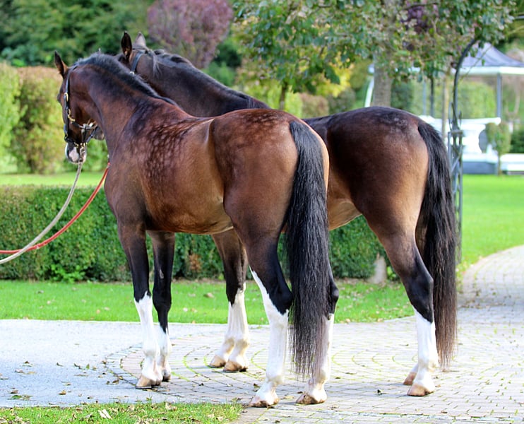 RAMIRO & Sir NANDO 4,5 Jahre und 3,5 Jahre alt 165cm & 163cm Wallache Zwei junge Wallache, die nicht nur durch Ihre Qualität und ihrem enormen Bewegungspotenzial überzeugen, sondern auch durch Ihr harmonisches Miteinander. Beide im Hause REPNIK sorgfältig ausgebildelt und zusammen Zweispännig gefahren. Ramiro ist ebenfalls einspännig ausgebildet und konnte bereits seine ersten Erfolge in der nationalen Einspänner Meisterschaft feiern und glänzte prompt mit dem 3 Platz. Zusammen bilden Sie eine wunderschöne Einheit und sind ein tolles Team zusammen. Sie zeigen Vertrauen und Leistungsbereitschaft und jeder Fahrer weiss, wie schwierig es ist, ein Gespann zu bilden...zwei Pferde zusammen zu stellen ist keine Kunst, aber zwei Pferde, die eine Einheit bilden sehr wohl. Diese beiden Buben bilden diese Einheit. Beide haben einen freudigen Vorwärtsdrang, die mit Gelassenheit gepaart ist - diese Kombination macht Freude beim Fahren. Die Gangqualität sich einfach im Video anschauen und sich überzeugen lassen... Ramiro und Sir Nando sind ehrliche, lernwillige Jungtalente mit Ausdruck und Herz. Sie sind keine Ekzemer, keine Weber, Kopper oder haben gesundheitliche sonstige Einschränkungen. Sie sind herzlichst eingeladen uns im Fahrstall REPNIK zu besuchen und die beiden persönlich kennenzulernen. Auch eine Übernachtung in der hofeigenen Pension ist möglich (www.gostilna-repnik.si) Weitere Informationen & Videos gerne auch persönlich via Whatsapp 00386 68 129392 - Angelika Ihr Fahrstall REPNIK Team