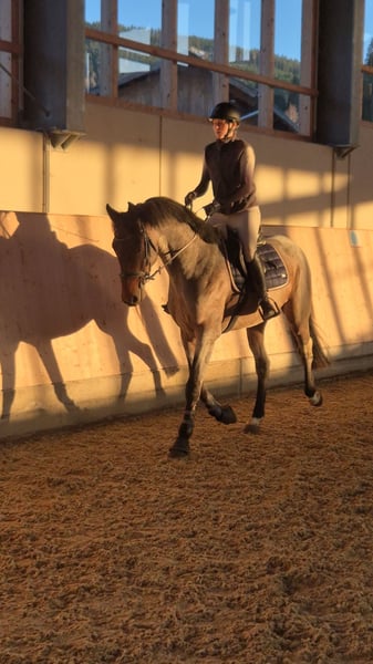 Ce hongre de 4 ans ne se distingue pas seulement par sa couleur exceptionnelle, mais surtout par son caractère calme, équilibré et affectueux. Carrera’s Boy possède tout ce que l'on peut attendre d'un jeune cheval prometteur : une lignée de premier ordre, un excellent saut libre et une tête bien faite ! Il a déjà été performant lors de deux compétitions, où il a montré une grande force nerveuse et une grande sérénité – rien ne le perturbe facilement. Je souhaite pour lui un foyer aimant 5 étoiles, où il pourra continuer à être soutenu et formé sportivement. Rodi ne sera pas vendu à des marchands ! Il est uniquement à céder à de bonnes mains, qui sauront l'encadrer.