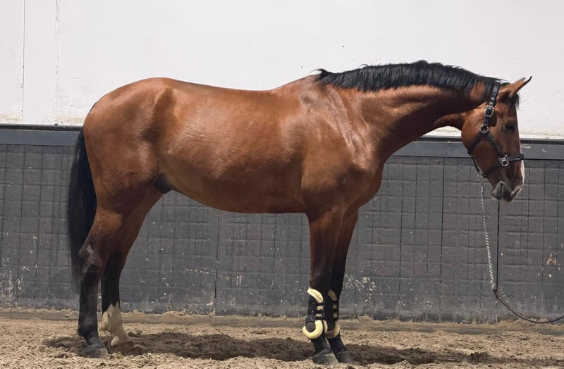 ✨ Ronaldo van de Muggenhoek ✨ 📅 Geboren 2021 | 🐎 Ruin | 📏 ±171 cm 🧬 Afstamming: Idextro x Kashmir van Schuttershof x Damocles Mooie, veelbelovende jonge ruin met een fijne en eerlijke instelling 💛 Ronaldo is braaf gereden, laat zich prettig bewerken en heeft een fijn karakter 👍 ⚠️ In verband met een klein beetje cornage wordt hij ver onder zijn waarde aangeboden 💰 ➡️ Dit belemmert hem niet in het werk ➡️ Hij mag nog rustig verder doorgereden worden 🔍 Een leuke kans voor iemand die een jong paard zoekt met kwaliteit voor een scherpe prijs! 📩 Interesse? Stuur gerust een berichtje 😊