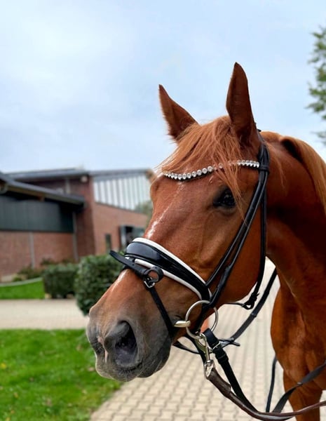 Five-year-old, large-framed gelding – approximately 17.2 hh Suitable for both novice and experienced riders Fillipo is a stunning, large-framed gelding with a very gentle and balanced temperament. He is exceptionally people-oriented, affectionate, and completely straightforward in daily handling. The gelding has been ridden both indoors and on the outdoor arena, and is also familiar with trail riding in groups, where he consistently shows himself to be well-behaved and reliable. 🔹 Movement & Training - Three very good basic gaits - Lively, rhythmical trot - Canter with significant collection potential - Walk with a 3-4 hoof overstep - Possesses all the prerequisites for higher-level classes 🔹 Additional Details Age: 5 years Gender: Gelding Height: approx. 17.2 hh Training level: age-appropriate, very promising 💰 Price range: €18,800 📍 Location: Dormagen near Düsseldorf Viewing and trial riding are available for a fee (€40). 📞 For more information: 0178 8374219