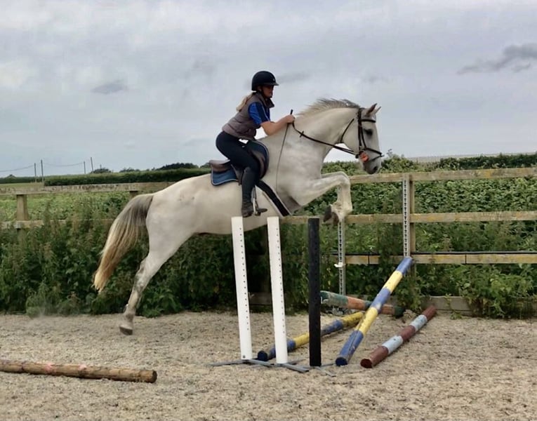 Prince is 5 and he takes after his name! He’s An absolute treasure to find as a young horse! . An ideal American hunter jumper type to import and produce . He has good x rays including back and is fashionably bred with desireable cornet obolensky bloodlines I have owned him since he was 3 and he’s been slowly and correctly handled and produced. Good to feet trim , load and travel in a lorry or horse trailer . He has straight legged movement for the american hunters too plus a balanced canter. He sits in a nice light frame and is not strong or spooky. Everything is naturally there for this young horse! Hes very well balanced and rhythmical already . He’s going to be very special if he’s continued to be produced well in the future as he naturally has it all there to work with . Plus great hunter jumper knees!