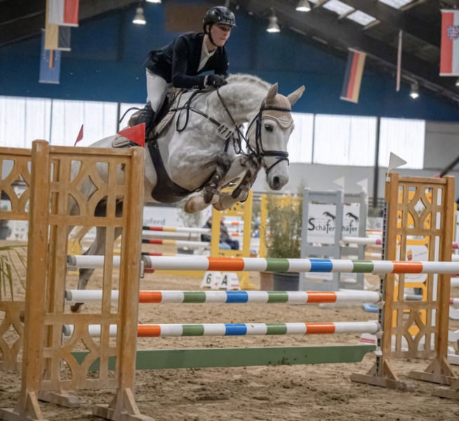 Un cavallo da sogno per tutti! Questo stallone di 6 anni, figlio di Cellestial x Vingino x Heartbreaker, vanta già molta esperienza ed è estremamente coraggioso e facile da montare. Ha già vinto 10 volte nelle categorie giovani cavalli fino a 1,20 m ed è stato più volte piazzato. È molto confortevole da cavalcare in passeggiata e possiede cambi di galoppo automatici e sicuri. È un vero piacere lavorarci ogni giorno e ha il potenziale per diventare un futuro cavallo da salto di grande livello, ma è anche abbastanza facile per ogni dilettante. È inoltre adatto come cavallo da Hunter o per l’Equitation. Dalla stessa fattrice sono già nati due cavalli da salto di 1,50 m. Altezza circa 1,66 m.