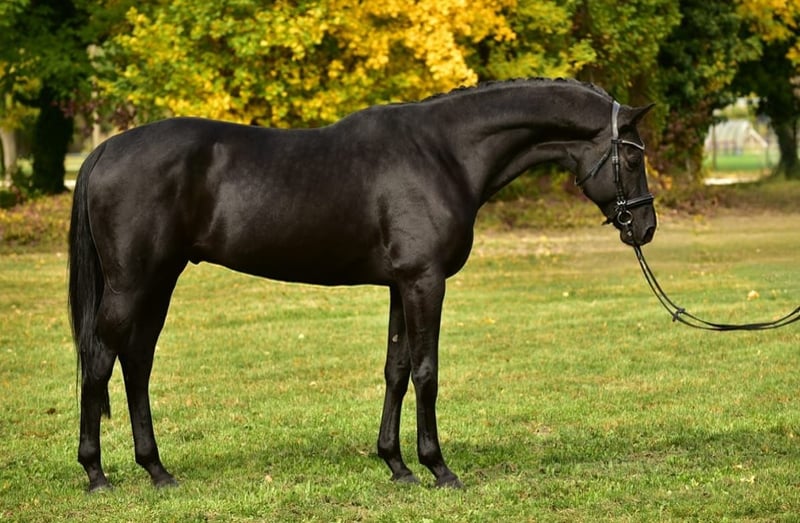 We offer a talented warmblood gelding for sale. **Features:** - **Breed:** Warmblood - **Gender:** Gelding - **Year of Birth:** 2019 - **Color:** Black-brown - **Height:** 172 cm - **Discipline:** Dressage This impressive gelding not only stands out with his noble appearance but also with his sensitive nature and eagerness to learn. He has already gained initial experience in dressage and shows great potential for further progress. He is well-mannered, well-trained, and suitable for both experienced riders and ambitious beginners who wish to grow together with him. If you are interested or would like more information, we look forward to your message! Take the opportunity to get to know this promising gelding!