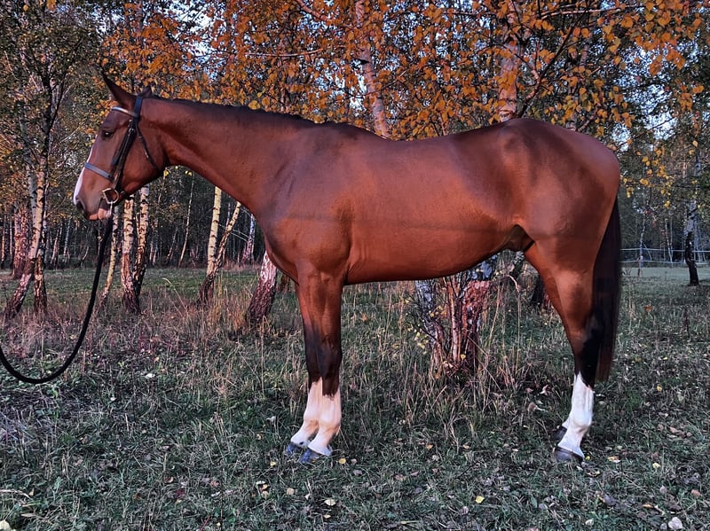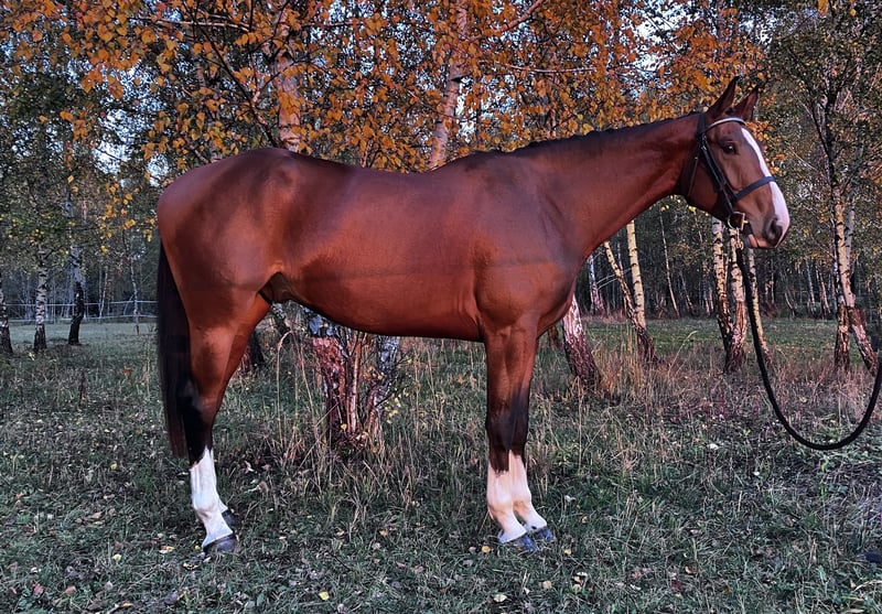 For sale is a tall gelding in basic training. He is 182 cm tall, born in 2020, jumps very well and has decent movement. Reason for sale is to reduce the number of horses. The horse is in good condition. Veterinarian, farrier, all care, fastening, handling, loading into transporters... no problems. More horses for sale. The horse is stabled in Rychvald (near Chałupky) in the Czech Republic. Price: 12,000 euros, negotiable.