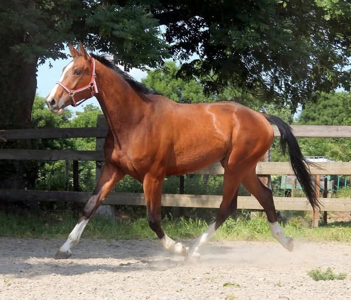 Se vende un potro alto en entrenamiento básico. Mide 182 cm, nació en 2020, salta muy bien y tiene un movimiento decente. La razón de la venta es reducir el número de caballos. El caballo está en buenas condiciones. Veterinario, herrador, todos los cuidados, sujeción, manejo, carga en transportes... sin problemas. Hay más caballos en venta. El caballo está en stabulación en Rychvald (cerca de Chałupky), República Checa. Precio: 12.000 euros, negociable.