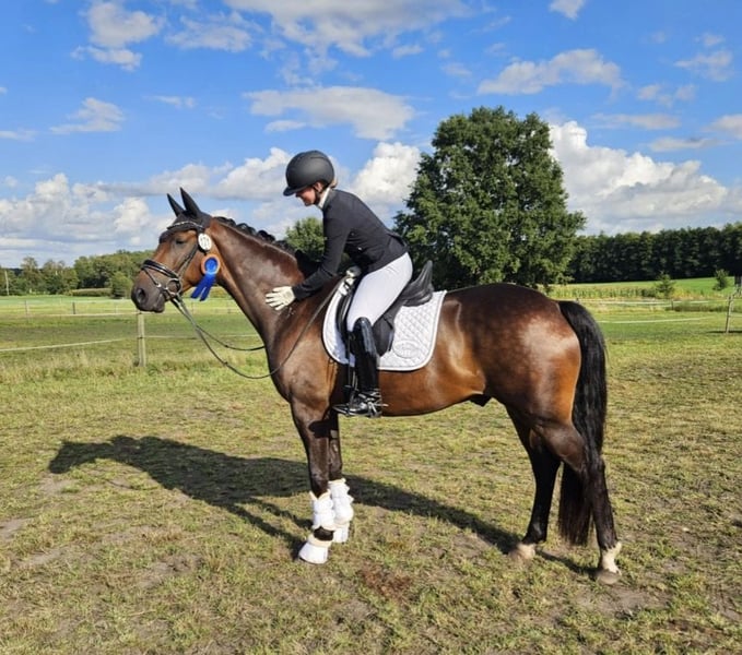 Verkaufe meinen Wallach – Perfekt für die Dressur oder auch Vielseitigkeit! Zum Verkauf steht ein wunderschöner brauner Wallach, geboren im Jahr 2019. Mit einem Stockmaß von 166 cm hat er die ideale Größe für ambitionierte Reiter, die Wert auf Qualität und Charakter legen. Der talentierte Dressurpartner überzeugt durch seine elegante Erscheinung und sein angenehmes Temperament. Er zeigt bereits viel Versammlungsbereitschaft, die das Potenzial für die hohen Anforderungen im Dressursport bieten. Der Wallach ist gesund, dem Menschen sehr zugewandt, möchte immer gefallen und hat spaß an der Arbeit. Er ist freundlich im Umgang und lässt sich sowohl von erfahrenen Reiterinnen und Reitern als auch von ambitionierten Nachwuchstalenten gut vorstellen. Er ist seitdem Fohlenalter in meinem Besitz. Bei Interesse oder für weitere Informationen stehe ich Ihnen gerne zur Verfügung. Eine Besichtigung und Probereiten ist nach Absprache möglich. Ich freue mich auf Ihre Kontaktaufnahme!