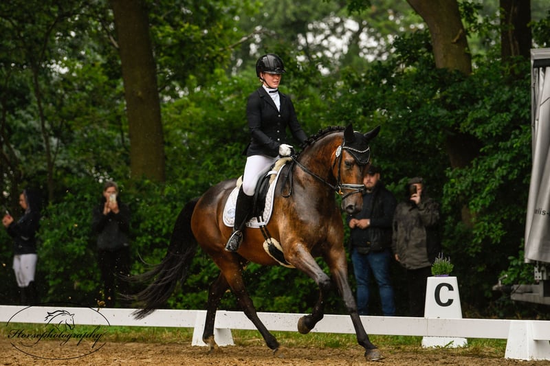 For sale is my gelding – perfect for dressage or eventing! He is a stunning dark bay gelding, born in 2019. Standing at 16.1 hh, he has the ideal size for ambitious riders who value quality and character. This talented dressage partner impresses with his elegant appearance and pleasant temperament. He already demonstrates a good degree of collection, showing potential for the high demands of dressage competition. The gelding is healthy, very affectionate towards people, eager to please, and enjoys his work. He is friendly in handling and would suit both experienced riders and ambitious young talents. He has been in my possession since he was a foal. If you are interested or need more information, please feel free to contact me. Viewing and trial riding can be arranged by appointment. I look forward to hearing from you!