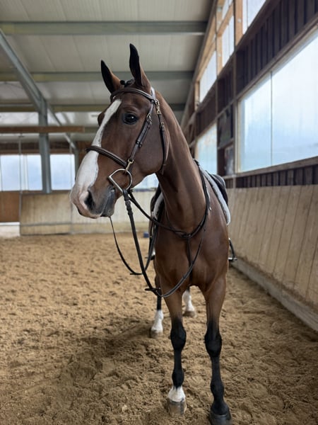 7-year-old gelding by Arlo Currently successful and repeatedly placed up to M* level (125 cm). Excellent young prospect with great talent and the right attitude for sport. Very suitable as a hunter or equitation horse as well. Good X-ray results available.