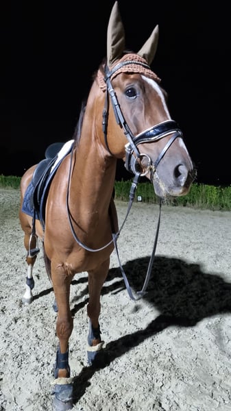 Oliver ist ein 6-jähriger Wallach, sächsischer Abstammung von FERGUSON X AMAZING STAR, mit einer Stockmaß von 1,68 m. Er zeigt sehr schöne Bewegungen und besitzt, mit einem passenden Reiter, definitiv Talent für den Sport. Er verfügt über drei korrekt ausgebildete Gänge. Er ist ein arbeitswilliges und lernbegieriges Pferd, das auf der Suche nach einem klaren und selbstbewussten Reiter ist, der ihm alles beibringen kann und will. Er wird unter dem Sattel nicht nervös, benötigt aber etwas Überzeugungskraft, was sich darin zeigt, dass er bei spannenden Situationen stehen bleibt und rückwärts geht. Momentan wird er auf L1/L2-Niveau trainiert. Er ist brav in der Hand. Er lässt sich gut vom Schmied und Tierarzt behandeln. Entwurmung, Zahnkontrolle und Impfungen sind ordnungsgemäß durchgeführt. Er ist sozial verträglich gegenüber anderen Pferden. Das Pferd baut bei Veränderungen Spannung auf, vor allem im Stall. Dies zeigt sich durch kurzes, aber intensives Wiehern, das jedoch sofort wieder verschwindet, wenn die Situation wieder „normal“ ist (z. B. bei lauten Geräuschen, neuen Pferden im Stall oder viel Unruhe). Derzeit steht er auf einem kleinen Pensionsstall, wo alles gut unter Kontrolle ist. Für ihn suche ich daher eine stabile Umgebung. Er ist ein Luftzuiger, der nur auf seinem Vorderbein und während und kurz nach dem Fressen (nicht darüber hinaus) ausatmet. Dies ist jedoch nicht der Grund für den Verkauf. Ich selbst fühle mich unter dem Sattel nicht sicher genug, was zu Lasten seiner Qualität und meinem Spaß geht. Er hat eine kleine radiologische Bemerkung. Der Tierarzt hat keine klinischen Beschwerden festgestellt, und er ist sporttauglich. Eine Untersuchung ist möglich, die Kosten trägt der Käufer. Videos auf Anfrage. Für weitere Informationen sende mir gerne eine Nachricht via WhatsApp.