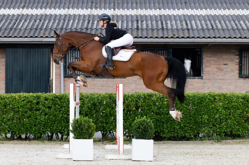 The seven-year-old Nul Punt Nul VK still comes across a bit green for his age. He starts a little spooky but relaxes after a few jumps. A showjumping horse with plenty of scope and carefulness. He has an honest character, but in our view is not the right match for a beginner amateur. His full brother Heineken VK VDL (1.35m level) is KWPN approved. Sire Zirocco Blue is also known for his scope and quality. He jumped at the highest level for many years with Jur Vrieling and has already produced more than sixty 1.60 Grand Prix horses. Of these, Eddie Blue with Devin Ryan (USA), Elysium with Hans-Dieter Dreher (GER) and Giborne VDL with Daniel Coyle (IRL) are even classified at 1.70m level. Dam is the well-known Regina Adelheid Z (Rebel Z), who competed at 1.35m level. She produced ten offspring at 1.30m and higher. Her sons Regino (Animo), approved by the KWPN, and JK Horsetrucks Alme Adelheid Z (Animo) reached 1.60m and 1.50m respectively. Great-granddam Jasperina (Ramiro Z) performed at 1.50m level; her dam Gracina (Jasper) competed at 1.40m level. Talk about performance mares…