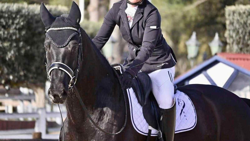 Questo splendido gelding KWPN di 7 anni si distingue per la sua presenza, il suo modello armonioso e il suo carisma naturale. Con il suo grande statura (1,72 m) e le sue tre andature di buona qualità, combina eleganza, forza e modernità. Sotto il suo aspetto espressivo si nasconde un cavallo molto gentile, sensibile ma ben educato, dotato di un eccellente carattere e mentalità nel lavoro. È un cavallo dal sangue, volontario e generoso, che cerca sempre di fare bene e di progredire. Padre: Governor (figlio di Totilas) – stallone di fama internazionale, finalista ai Campionati del Mondo dei Giovani Cavalli, noto per trasmettere espressione, flessibilità e un’ottima qualità di galoppo. Madre: Apache (figlio di UB 40) – figura di spicco del dressage moderno, celebre per potenza, forza e ritmo nella discendenza. Una genealogia eccezionale che combina classe, energia e potenziale sportivo. Questo gelding mostra già ottimi fondamentali: Iniziato in disciplina classica a 4 anni, ottiene 8 al passo e al galoppo, 7,5 al trotto, con commenti molto positivi sul suo atteggiamento e sulla qualità del contatto. Successivamente, ha proseguito nel ciclo libero a 5 anni, confermando la sua regolarità e il suo comportamento eccellente in gara. Attualmente, lavora a livello Amateur 2, con i cambi di piede in fase di acquisizione. Per mancanza di tempo, non è stato recentemente presentato in competizione, ma mostra tutto il potenziale per evolversi rapidamente verso un livello superiore con un cavaliere regolare. Tre andature di buona qualità, con un galoppo ampio e saliente, e un passo notevole per flessibilità e ampiezza. Molto forza, schiena solida e un’ottima spinta degli posteriori. Mentalità molto sana in gara, concentrato e generoso. Gentile quotidianamente, molto socievole e ben educato. Un cavallo moderno, espressivo e dotato di una genetica eccezionale, ideale per un cavaliere che cerca un partner di futuro con struttura, sangue e vere qualità per il dressage.