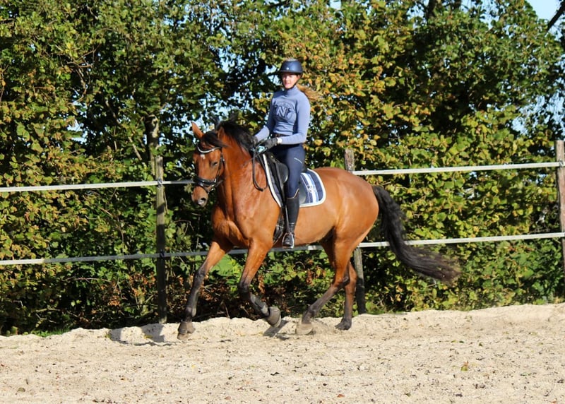 Wir bieten einen wunderschönen Wallach, geboren 2017, ca. 1,75 m groß. Er hat bereits Dressur bis auf Dutch Z1-Niveau (vergleichbar mit deutschem M) geritten und hat mehreren Reitern geholfen, in höhere Dressurklassen aufzusteigen. Er zeigt eine grüne fliegende Veränderung. Im Training hat er Springen bis 90–100 cm absolviert. Im Stall ist er ein sehr sozialer Pferd, sowohl im Umgang mit anderen Pferden als auch mit Menschen. Er ist im Straßenverkehr und im Gelände sowohl alleine als auch in der Gruppe gut beherrscht. Er ist unkompliziert beim Hufschmied und beim Tierarzt. Auf allen vier Beinen beschlagen. Perfekt für den Übergang vom Pony zum Großpferd. Seine Abstammung ist Herald III x Numero Uno. Wir haben versucht, ihn für Vielseitigkeit zu trainieren, doch sein Herz schlägt eindeutig für die Dressur. Er ist ein echter Allrounder, zeigt aber die besten Leistungen in der Dressur. Er wurde 2024 sowohl radiographisch als auch klinisch untersucht, ohne Befund. Berichte und Röntgenbilder sind vorhanden. Eine Nachkontrolle ist nach Vereinbarung möglich. Bei Interesse senden Sie bitte eine Nachricht per WhatsApp (+49 6151 555607). https://www.horsetelex.nl/horses/pedigree/2641310/macho