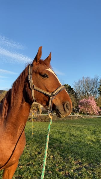 Dioniss ist ein bildhübscher Wallach, der mit seinen drei wunderbaren drei Grundgangarten und seiner tollen Rittigkeit überzeugt. Vor gut zwei Jahren habe ich ihn gekauft, selbst angeritten und mit viel Freude Schritt für Schritt ausgebildet und weiter gefördert. Dabei war er stets neugierig, motiviert und voller Spaß bei der Arbeit. Er kennt die Grundaufgaben und meistert diese souverän. In der Bodenarbeit, besonders bei der Stangenarbeit, ist er mit Begeisterung dabei. Das Gelände kennt er ebenfalls – dort zeigt er sich interessiert, mutig und immer positiv eingestellt. Dioniss ist sehr menschenbezogen, freundlich und ein treuer Partner, der stets das Beste geben möchte. Er ist offen für neue Aufgaben und möchte weiter gefördert werden. Den Hufschmied kennt er und verhält sich dabei brav und gelassen. Mit seiner hervorragenden Abstammung bringt er viel Potential mit, das entdeckt und gefördert werden möchte. Jedoch steht Dioniss noch am Anfang seiner Ausbildung und braucht daher einen Partner, der ihn liebevoll auf seinem weiterem Weg begleitet und fördert. Dioniss ist somit kein Anfängerpferd. Bei Interesse oder weiteren Fragen gerne eine WhatsApp oder telefonisch melden unter der Nummer 015155564960.