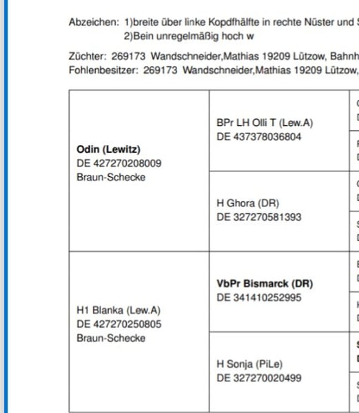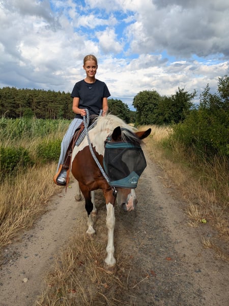 Lewitzer Stute „Bailey“ – zuverlässiges Freizeitpferd mit großem Herz Schweren Herzens suche ich für meine Lewitzer Stute Bailey ein neues, liebevolles Zuhause. Da ich ihr zeitlich leider nicht mehr gerecht werden kann, wünsche ich mir für sie einen Platz bei Menschen, die ihr die Aufmerksamkeit und Beschäftigung geben können, die sie verdient. Zu Bailey: Lewitzer Stute 12 Jahre alt Braunschecke Stockmaß ca. 138 cm Bailey ist ein absolutes Verlasspferd im Gelände. Sie ist unerschrocken, nervenstark und geht nicht durch – auch wenn sie mal ein paar Tage stand. Gleichzeitig ist sie sehr menschenbezogen und baut eine enge Bindung zu ihrer Bezugsperson auf. Sie möchte gefallen und arbeitet gern mit ihrem Menschen zusammen. Sie deckt kleinere Erwachsene bis etwa 60 kg gut ab. Die letzte Reitbeteiligung war 15 Jahre alt, was sehr gut funktioniert hat. Bailey möchte regelmäßig beschäftigt werden und freut sich über Menschen, die gern Zeit mit ihrem Pferd verbringen – sei es beim Reiten, Spazieren gehen oder Bodenarbeit. Wichtig: Kein Pferd für kleine Kinder. Bailey sucht eine feste Bezugsperson und einen ruhigen, verantwortungsvollen Umgang. Durch meinen Unfall wurde sie seit etwa 3 Monaten nicht gearbeitet, war davor aber regelmäßig im Einsatz. Sie steht ganzjährig im Offenstall mit paddocktrail und im Sommer stundenweise auf der Weide. Platz vor Preis – sie wird nur in allerbeste Hände abgegeben. Bei ernsthaftem Interesse freue ich mich über eine Nachricht und erzähle gern mehr über Bailey.