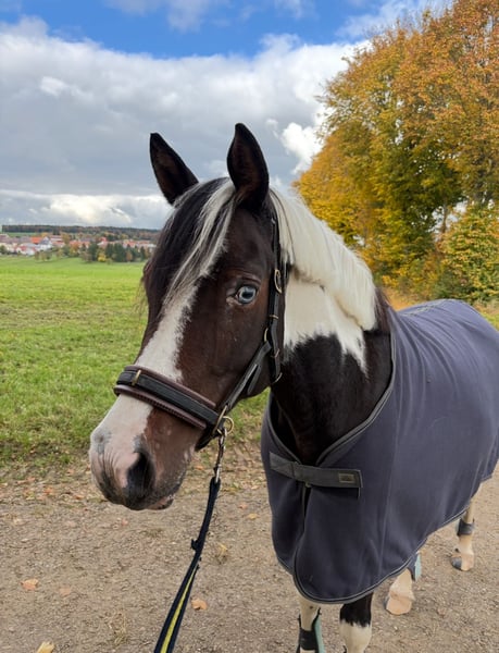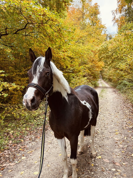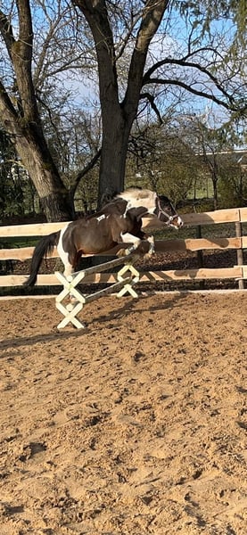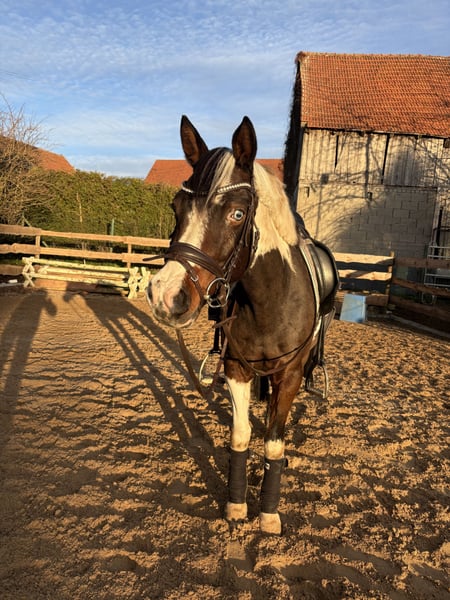 Nutella ist eine auffällige, hübsche 6-jährige Lewitzer Stute, die nicht nur mit ihrem Aussehen überzeugt, sondern auch mit ihrem Charakter und ihrer Rittigkeit. Sie misst ca. 1,50 m. In der Dressur geht sie sicher auf A-Niveau und kann bereits einige L-Lektionen. Sie arbeitet motiviert mit und lernt schnell. Beim Springen zeigt sie Mut, springt sauber und geht auch kleine Naturhindernisse wie Baumstämme problemlos. Auch in der Vielseitigkeit wäre sie denkbar – sie springt wirklich alles, will immer rüber und hat viel Spaß im Gelände. Am Boden ist sie richtig engagiert. Sie kann einparken, spanischen Schritt und hat allgemein viel Freude an der gemeinsamen Arbeit. Nutella ist sehr freundlich und vorsichtig – auch zu Kindern. Sie lässt sich brav von jüngeren Reitern führen und reiten und bleibt dabei immer gelassen. Eine liebe, vielseitige Stute, die sowohl im Freizeitbereich als auch sportlich viel Potenzial mitbringt. Ein tolles Pferd für jemanden, der einen ehrlichen Partner sucht.