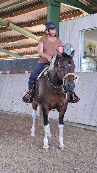 Unfortunately, I need to find a wonderful new home for my 14-year-old gelding. Remmy is a cheerful and playful character, well-behaved in handling: hoof care, vet visits, and loading onto the trailer. He tends to get a bit stressed when alone in the trailer, but is fine when accompanied by another horse. He can go alone into the field with a confident rider (he was even placed in the Bundeschampionate for leisure horses in the past). Remmy is trained gymnastic-style on the arena, knows ground work, and is traditionally Western ridden with me—previously he was ridden English/classically. Remmy is easy to feed, lives in a mixed herd, and is currently the dominant leader—this is the challenge and the reason for his sale: the others are sometimes hard to feed and get nothing, while he gets too much. He has a medical history (a ligament that was successfully treated with stem cell therapy) and must not gain weight again. He has been back in training for six weeks and enjoys his work. He has had no health issues with me, aside from a hoof band, for which I am happy to provide more details if interested. Of course, he is regularly vaccinated, dewormed, osteopathically treated, and receives minerals. His hooves are maintained every 8 weeks. The dentist was here on November 4th. Remmy is not a last-minute sale and will only go to a truly suitable home. Multiple trial rides and getting to know each other are encouraged—everyone should feel comfortable, after all, he’s not a bicycle!