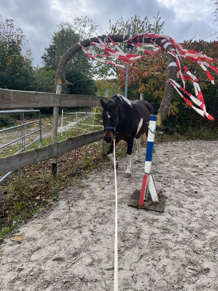 Leider muss ich für meinen 14 jährigen Wallach ein tolles neues Zuhause finden. Remmy ist ein lustiger Quatschkopf, artig im Umgang: Hufbearbeitung, TA, Anhänger. Bei letzterem hat er alleine etwas Stress, zu zweit ist es kein Problem. Er kann mit einem sicheren Reiter alleine ins Gelände (früher ist er sogar im Bundeschampionat für Freizeitpferde platziert gewesen). Remmy wird gymnastizierend auf dem Platz geritten, kennt Bodenarbeit und wird bei mir klassisch Western geritten- früher englisch/ klassisch. Remmy ist leichtfuttrig, steht in gemischter Herde und ist aktuell fairer Chef- das ist das Problem und der Verkaufsgeubd: die anderen sind z.T. Schwerfuttrig und bekommen nichts ab, er zu viel… Er hat einen Befund (ein Band, das mittels Stammzellentherapie erfolgreich behandelt wurde) und darf nicht wieder dick werden. Remmy wird seit 6 Wochen wieder trainiert und hat Spaß an der Arbeit. Er hatte bei mir keinerlei gesundheitliche Beschwerden, bis auf das Hufband, bei Interesse gern dazu mehr. Selbstverständlich ist er regelmäßig geimpft, entwurmt, Osteopathisch behandelt, er bekommt Mineralien und alle 8 Wochen Hufpflege. Der Zahnarzt war am 04.11. da. Remmy ist absolut kein Notverkauf und geht nur in das absolut passende Zuhause. Mehrmaliges Probereiten und Kennenlernen ist erwünscht- alle sollen ein gutes Gefühl haben, schließlich ist er kein Fahrrad;)
