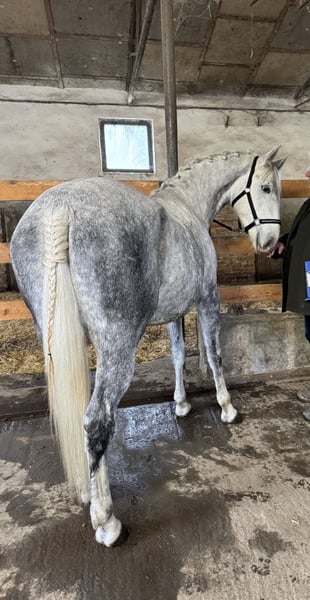 Harmonia ist eine wunderschöne, elegante Lipizzaner-Stute mit vollem LIF-Papier und bereits erfolgreich als Zuchtstute ins Stutbuch aufgenommen. Sie stammt aus der Conversano-Linie und überzeugt durch ihren Top-Charakter sowie eine außergewöhnliche Bewegungsqualität. 🔹 Sehr interessant für die Zucht 🔹 Ebenso geeignet als Freizeit- und Sportpartner Im täglichen Umgang ist Harmonia äußerst brav und unkompliziert. Sie kennt Kinder, Hunde sowie alle Arten von Landmaschinen und ist schmiede- und verladefromm. Sie wird regelmäßig entwurmt und geimpft. Harmonia kennt die Bodenarbeit, geht als Handpferd mit ins Gelände und wird bereits anlongiert. Aufgrund von Bestandsverkleinerung ausschließlich an einen absoluten Bestplatz abzugeben! 💰 Preis der Qualität entsprechend. Kontaktieren Sie mich gerne für weitere Fragen oder zur Vereinbarung eines Besichtigungstermins!