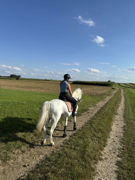 Imi ist ein 11 jähriger Lippizianer Wallach , der sowohl in der Dressur , im Parcours Springen wie auch an der Freiarbeit großen Spaß hat . Er liebt die Arbeit , ist dabei aber immer sehr gut händelbar und kann auch von nicht so starken Reitern gut geritten werden . Momentan läuft er wegen Zeitmangel durch meine Schwangerschaft. ( er ist mein Zweitpferd) in der Reitschule mit und zeigt sich dort sehr brav und motiviert .