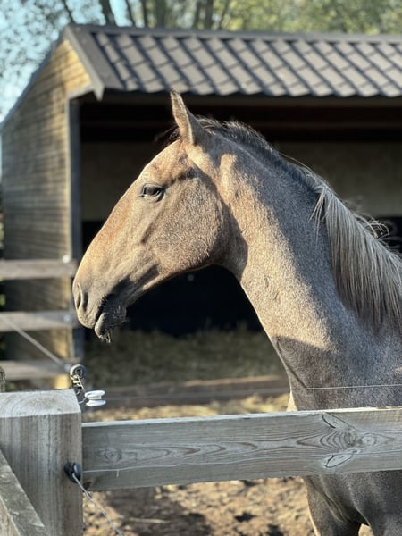 Dieser hübsche Hengst wurde kürzlich kastriert, damit er in der Herde aufwachsen kann. Seine Mutter stammt aus Lipica, sein Vater ist Kroate. Dieser Wallach ist sehr sanft, lieb und lässt sich nicht so schnell aus der Ruhe bringen. Er ist äußerst neugierig, halfterführig und menschenbezogen. Er besitzt einen belgischen Pass und ist gechippt sowie entwurmt. Derzeit wächst er in einer kleinen Gruppe von Jahrlingen auf, in der er sein volles Potenzial entfaltet.