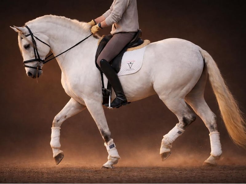 Wir präsentieren diesen Lusitano-Hengst, geboren im Jahr 2015, mit einem Stockmaß von 167 cm. Er vereint Präsenz, Funktionalität und eine gut ausbalancierte Struktur. Derzeit wird er auf Basisniveau geritten und zeigt eine solide Grundausbildung sowie eine kooperative Einstellung unter dem Sattel. Besonders hervorzuheben ist sein ausgezeichneter Charakter. Er ist nobel, unkompliziert im Umgang und mental ausgeglichen, Eigenschaften, die sowohl für den täglichen Freizeitgebrauch als auch für Reiter wichtig sind, die Sicherheit und Einfachheit im Umgang schätzen. Sein Temperament erleichtert die tägliche Arbeit im Stall sowie beim Reiten und macht ihn zu einer interessanten Option für Käufer, die den Freizeitaspekt und die Verbindung zum Pferd über den sportlichen Wettbewerb stellen. Aufgrund seines Alters und seines aktuellen Ausbildungsstandes ist er nicht für den hochklassigen Dressursport vorgesehen. Er eignet sich jedoch hervorragend als Freizeitpferd, für Ausritte oder leichte Arbeit. Als Lusitano-Hengst kann er zudem für Zuchtprojekte interessant sein, bei denen Charakter, Rassetyp und Funktionalität im Vordergrund stehen. Insgesamt stellt er eine ehrliche und stimmige Option für jemanden dar, der ein ausgeglichenes Pferd mit guter Einstellung sucht, mit Fokus auf Freizeit oder Zucht und nicht auf Spitzensport.