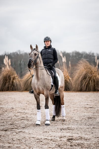 PIRO VRIJ! Homozygoot Dun + Heterozygoot Crème Te koop staat een absolute wereldwijde zeldzaamheid: I-Don Malagueno is de enige homozygote Dun hengst die is goedgekeurd voor het hengstenboek 1 Oldenburger (door sportprestaties in dressuur). Hij is bovendien erkend voor het hengstenboek 1 Duits Paard (ZfdP), Palomino, Duits Barokpaard, Pinto en natuurlijk goedgekeurd bij de APSL. Hij brengt daarmee de zeldzame DUN kleur met volledige stamboekpapieren in de warmbloedfokkerij. Daarnaast heeft hij 1 CRÈME-gen, wat een nieuwe kans op oplichting in de warmbloedfokkerij biedt. Een hengst die niet alleen overtuigt door zijn unieke schoonheid en kleurgenetica. Winnaar in St. Georg, opgeleid in Duitsland tot S** met een opmerkelijke piaffe en een zeer goede stap. Hij is bovendien opgeleid in de Working Equitation tot de Master Class en springt uitstekend. Zeer fijn aan de hand met een aangenaam karakter. Daarbij absoluut comfortabel om op te zitten. Ook ontspannen buitenritten, het werk aan de dubbele longe en lange teugel en veelzijdigheidssprongen zijn hem goed bekend. Een echte allrounder. In de fokkerij een volleerd professional. Zeer gemotiveerd en braaf bij het fantoom met top zaadkwaliteit. Zijn veulens overtuigen wereldwijd met sterke gewrichten, veel charme en nabijheid tot mensen. Kleurgenetica: DD/Ee/Crn/aa vrij van PSSM 1 & 2, WFFS, ECVM, zeer goede röntgenfoto's aanwezig. Vanwege veranderingen in mijn carrière staat hij te koop voor de juiste plek. Hij is de perfecte keuze voor een ambitieuze fokkerij die ook plezier heeft aan een rijdbaar sportpaard met een grote schare fans. Zijn website: www.oharlin-sb.com