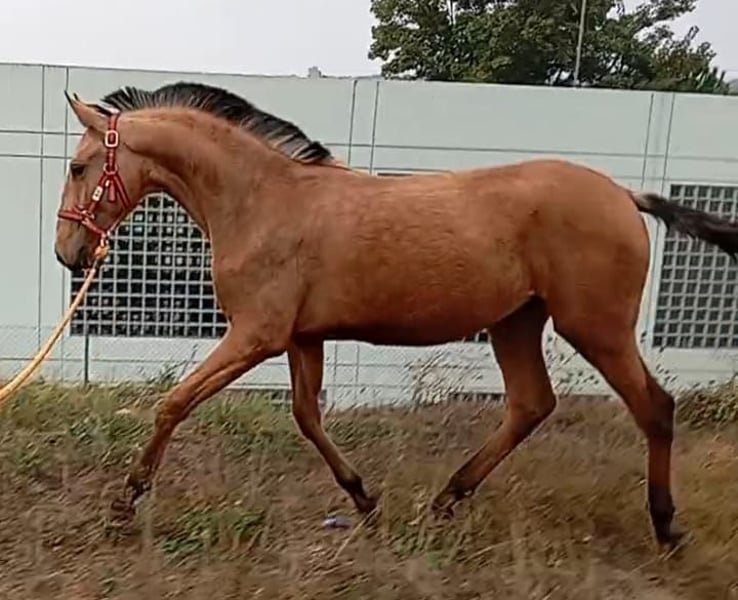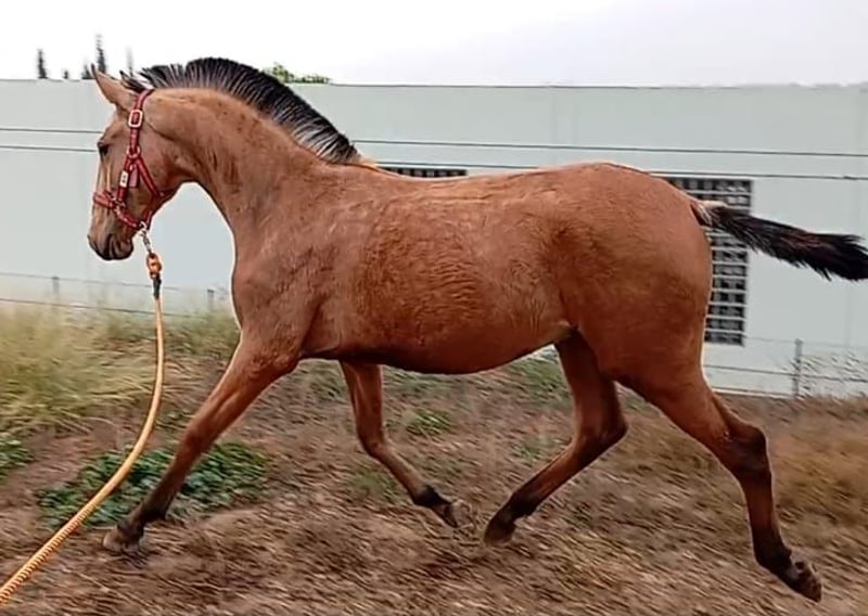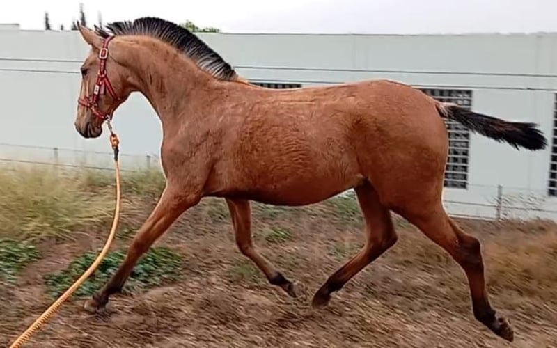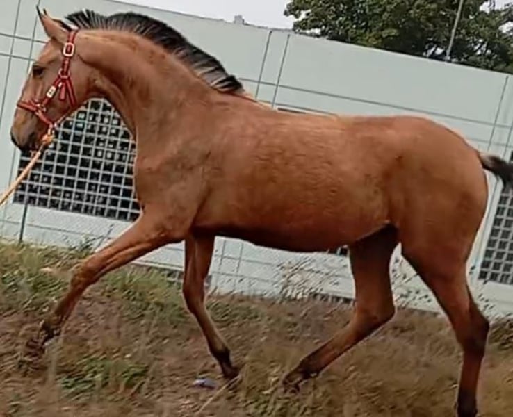 Ulme de Cais, giovane stallone di colore baio, di grande statura per la sua età, figlio di uno dei migliori stalloni di colore PSL, Miura de Cais. Ottima genealogia grazie a RIOPELE.