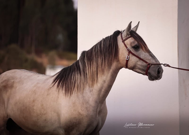 Junger Lusitano- Hengst in seltener Grau-Falb-Schimmel-Farbe, dazu fein, brav und talentiert! Merkmale: - Rasse: Lusitano - Geschlecht: Hengst - Geburtsjahr: 2022 - Farbe: Grau-Falb-Schimmel - Stockmaß: 152 cm zur Zeit Beschreibung Der dreijährige Lusitano-Hengst São Paio steht ab sofort zum Verkauf. Er überzeugt durch seine außergewöhnlich schöne Grau-Falb-Schimmel-Farbe und sein ausgesprochenes liebes und menschenbezogenes Wesen. Aktuell misst er etwa 1,52 m, wird aber mit Sicherheit noch etwas wachsen. Ausbildung São Paio befindet sich derzeit in einer altersgerechten, schonenden Ausbildung. Er ist longiert, arbeitet brav an der Longe und wurde bereits unter dem Reiter an der Longe in allen Grundgangarten gearbeitet. Er akzeptiert das Reitergewicht sehr gut und zeigt sich dabei stets aufmerksam, kooperativ und fein an den Hilfen. Seine Ausbildung wird selbstverständlich artgerecht und mit viel Geduld weitergeführt, sodass er sich weiterhin positiv entwickeln kann. Bewegung & Potenzial Auch im Freilauf zeigt São Paio eine schöne Selbsthaltung, sehr gute Grundgangarten und viel Talent für die Working Equitation. Sein Auftreten ist elegant, dabei immer ausgeglichen und angenehm im Umgang. Abstammung São Paio entstammt einem bemerkenswerten Stammbaum – sein Großvater ist kein Geringerer als der berühmte Escorial, was sich deutlich in seiner Qualität, seiner Bewegung und seinem Ausdruck widerspiegelt. Fazit Ein junger Lusitano mit viel Charme, Talent und besonderer Farbe, der seinem zukünftigen Menschen sicher sehr viel Freude bereiten wird – ob als Freizeitpartner, Working-Equitation-Pferd oder zukünftiges Reitpferd mit Potenzial. Weitere Bilder und Videos kann ich gerne bei Interesse zukommen lassen.