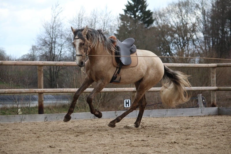 Tabu FIC ist ein sehr grossrahmiger PSL Hengst mit einem derzeitigen Stockmaß von 168cm (und da kommt noch einiges) Wir haben Tabu als Absetzer direkt von seinem Züchter in Portugal gekauft. Er ist als Palomino geboren und fängt jetzt immer mehr an auszuschimmeln. Er ist bei uns in einer kleinen Gruppe von Hengsten aufgewachsen und vor einigen Wochen haben wir ihm aufgestallt. Der Beginn mit seiner Ausbildung zum Reitpferd startet vorbildlich. Er ist ein absolut ehrliches Pferd, sehr viel Grundruhe bei der Arbeit und nichts bringt ihn aus dem Konzept. Ein rundum tolles Pferd mit viel Potenzial. Schaut gerne auf meine Instagram Seite dort findet ihr einiges mehr über ihn. Reitkunst-iberische-Pferde Oder meldet euch bei Interesse einfach direkt bei mir