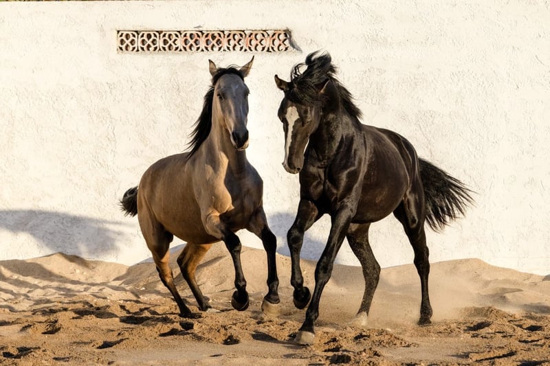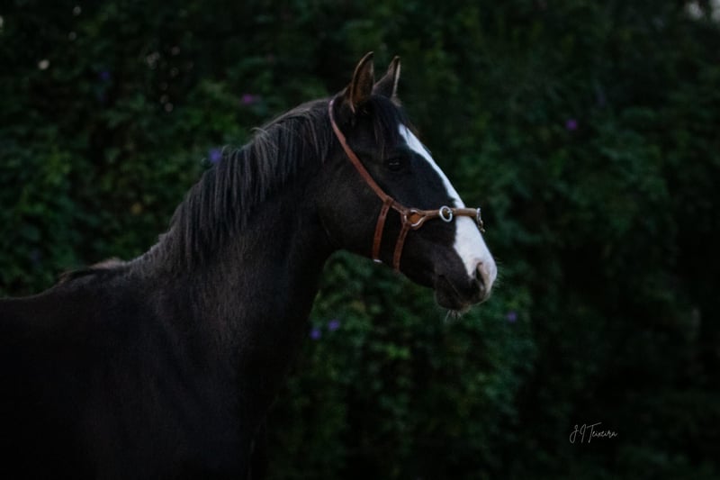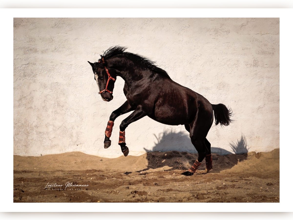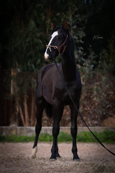 Impressive Lusitano warmblood stallion - Breed: Lusitano - Sex: Stallion - Year of birth: 2023 - Color: black - Height: 170 cm, final height estimated, currently 160 cm We are offering an impressive Lusitano warmblood stallion from the year of birth 2023 for sale. This magnificent black stallion not only impresses with his noble appearance, but also with his potential for dressage. Special lines such as Weltmeyer and MIAGUI DE CAIS combined in one horse. This young stallion already shows outstanding movements and a natural elegance that makes him an ideal partner for ambitious dressage riders. His friendly and attentive nature make him a great partner. He is currently being reared according to his age. I can send you more pictures and videos if you are interested.
