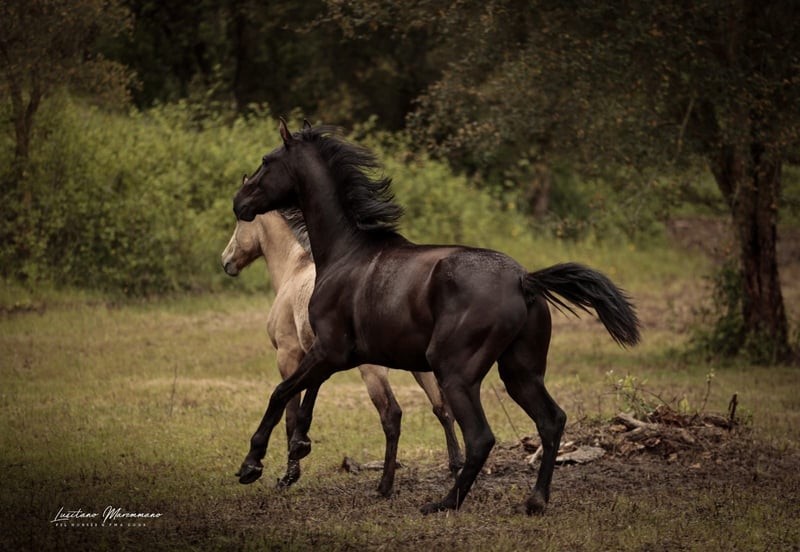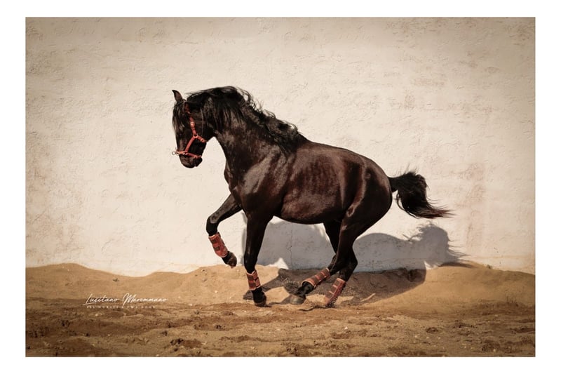 Imponujący ogier rasy lusitano warmblood - Rasa: Lusitano - Płeć: ogier - Rok urodzenia: 2023 - Umaszczenie: czarne - Wzrost: 170 cm, ostateczny wzrost szacowany, obecnie 160 cm Oferujemy na sprzedaż imponującego ogiera rasy Lusitano warmblood z roku urodzenia 2023. Ten wspaniały czarny ogier zachwyca nie tylko swoim szlachetnym wyglądem, ale także potencjałem ujeżdżeniowym. Specjalne linie, takie jak Weltmeyer i MIAGUI DE CAIS, połączone w jednym koniu. Ten młody ogier już wykazuje wybitne ruchy i naturalną elegancję, co czyni go idealnym partnerem dla ambitnych jeźdźców ujeżdżeniowych. Jego przyjazna i uważna natura czyni go świetnym partnerem. Obecnie jest wychowywany zgodnie ze swoim wiekiem. Zainteresowanym mogę przesłać więcej zdjęć i filmów.