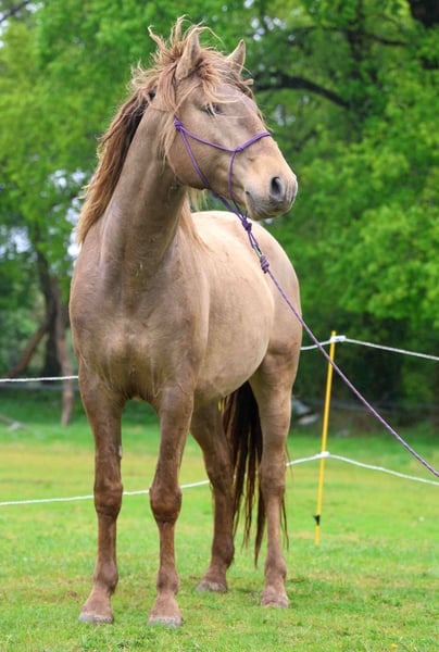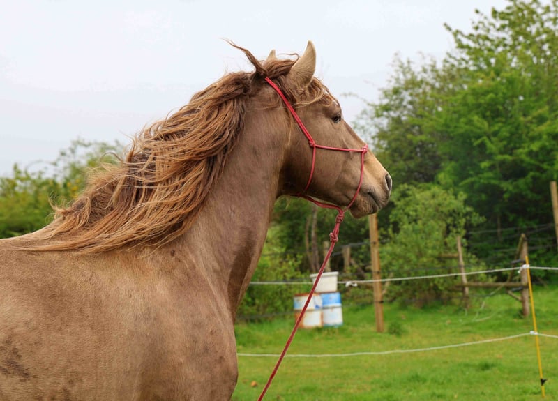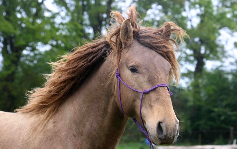 LORYON D’IBERYN – Double Pearl Baroque Stallion Approved Royal Belgium Palomino stallion, 4.5 years old, approximately 16.1 hh, Baroque type. Born in France and registered in the "OC" studbook, sired by two purebred Lusitanian parents, though the sire is not approved for breeding (COCA & LOLYTA). Double Pearl coat – extremely rare. Tested EE Aa PRLPRL, will pass on a black gene and a pearl gene to 100% of his foals. IMPORTANT: He is NOT Lusitanian PP. Approved for breeding by the Royal Belgium Palomino studbook, meaning his offspring will be eligible for RBP registration. GENETICS + HEALTH Negative for all genetic diseases. PRLPRL homozygous – 100% of his foals will carry the pearl gene. EE Aa – 100% bay base, no chestnut foals. No health issues; he has been with me since 8 months old. Never lame or ill. TEMPERAMENT + TRAINING Backed but still green in work (only 4.5 years old), I prefer to take my time. Mainly used for hacking (alone or in groups) and some mountain trail riding. TEMPERAMENT = Cheerful, lively, easy-going, curious, playful, close to humans, calm, zen, willing! He lives outdoors in a herd all year round. Gets along well with both a herd of stallions and a group of mares and foals during the season. Not dominant or aggressive; with other horses, he is rather playful, curious, and relaxed with his companions. He retains a youthful spirit. Already a sire of several foals – respectful of mares and experienced in breeding. UP-TO-DATE Osteopath, dentist, farrier, dewormer, and vaccinated against flu, tetanus, and Rhino. IDEAL FOR = Work riding, dressage, shows, TREC, trail riding, leisure, or breeding.
