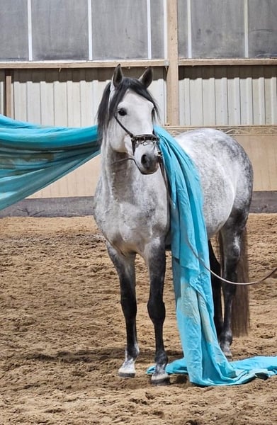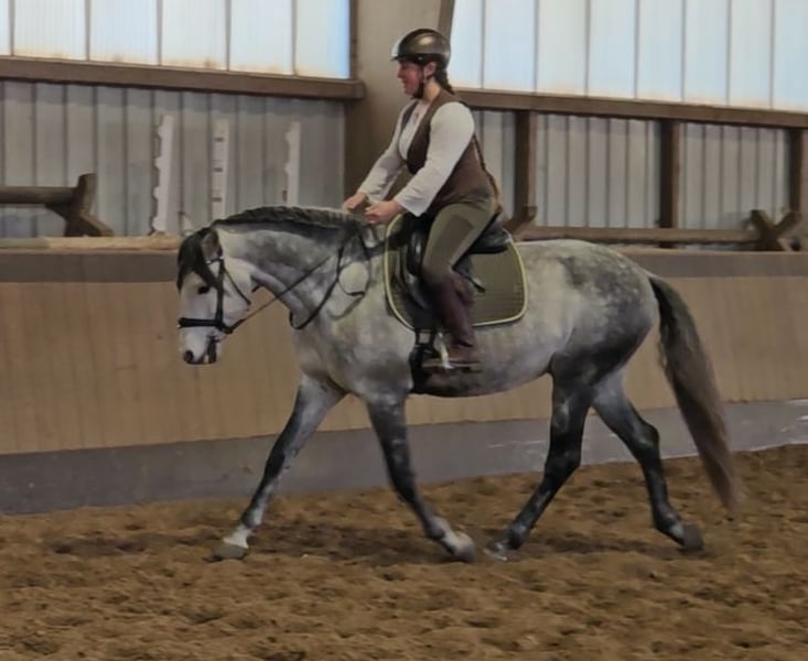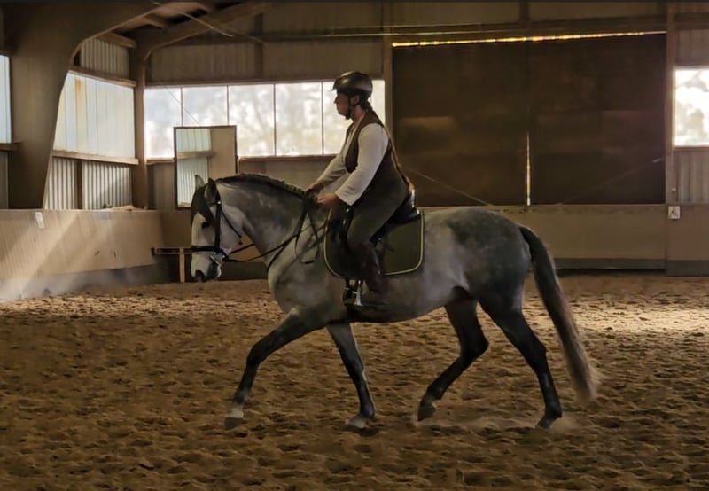 Picasso ist ein echter Gentlemen und möchte immer gefallen. Er ist neugierig, fleißig, lernt schnell und ist dabei nervenstark und sehr auf seinen Menschen fokussiert. Er ist ein Freund fürs Leben, mit dem Du alle Abenteuer bestehen kannst! Ob Working Equitation, Dressur, Gelände, Freiarbeit, Trail oder Zirkuslektionen.... mit Picasso hast Du viele Möglichkeiten Deine reiterlichen Träume zu verwirklichen. Picasso ist brav im Umgang und sicher beim Verladen. Er geht mutig auch allein mit seinem Menschen spazieren. Der wunderbare junge Hengst wünscht sich einen Herzensmenschen, mit dem er zusammen in ein großartiges Pferdeleben starten kann. Er wurde vierjährig angeritten aus Portugal importiert. Vor 2 Jahren war die große Ankaufsuntersuchung ohne Befund. Aufgrund persönlicher Umstände der Besitzerin wurde er in den letzten 2 Jahren sehr wenig gearbeitet und braucht daher noch Balance und Kraft und einen Reiter, der ihm Ruhe und Sicherheit geben kann. Picasso ist kein Anfängerpferd. Picasso hat eine hervorragende Abstammung. Seine Bewegungen sind raumgreifend und schwungvoll und trotzdem sehr bequem zu sitzen. Er ist wendig und temperamentvoll und hat Spaß am Lernen und an der Beschäftigung mit dem Menschen. Der junge Mann ist überhaupt nicht hengstig und kann entspannt mit anderen Pferden zusammen gearbeitet werden. Er kennt Offenstall, Wiese und Box und ist völlig unproblematisch auch in fremder Umgebung. Wir vermitteln Picasso im Auftrag der Besitzer und freuen uns über Dein Interesse. Bitte nur ernsthafte Anfragen!