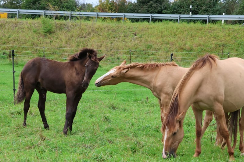 ⚜️Vamos-Asti geb. 31.03.2025⚜️ Vamos ist ein red dun, er trägt das Dun -Gene D/nd1. Diese Farbe ist in der Lusitanozucht sehr selten. Das Dun-Gen ist ein genetischer Aufhellungsfaktor bei Pferden, der die Fellfarbe verdünnt und gleichzeitig sogenannte Wildzeichnungen wie einen dunklen Aalstrich, Zebrastreifen an den Bein und ein Schulterkreuz hervorruft. Er ist im Offenstall aufgewachsen, mit 24 Std. Zugang zur großen Koppel. Er kennt es, auch mit seiner Mama in der Box zu sein. Er kennt das Fohlen-ABC, er wird selbstverständlich regelmäßig entwurmt und mit Mineralien versorgt. Er ist an allem interessiert, ist nervenstark und spielt sehr gerne mit seinem gleichaltrigen Freund Vegas. Vamos hat gute Bewegungen und ist typisch für seine Rasse sehr wendig und in gutem Gleichgewicht. Geschätztes Endmaß + - 1,58-1,60 m. Mutter Quā 1,52 m ist ebenfalls eine red dun. Sie hat sehr gute Bewegungen, und ist typisch für die Lusitanos sehr wendig. Quā wurde angeritten, dabei hat sie sich als außergewöhnlich nervenstarke und kooperative gezeigt. Ihren guten Charakter, hat sie beim anreiten ebenfalls gezeigte. Guter Charakter und „klar im Kopf“ist für mich neben Gesundheit, das wichtigste Merkmal was ein Pferd besitzt sollte. Der Papa I-Don Malagueño 1,64 m ist ein Hengst der sich international bewiesen hat. Sein Exterieur und auch seine Leistungsbereitschaft sind außergewöhnlich. Siegreich bis Prix St Georg und durch Sporterfolge voll zugelassen für Hengstbuch 1 Warmblut. Auch er hat einen sehr lieben und guten Charakter und den „will to please“. Ein Platz in einer professionellen Hengstaufzucht, mit der wir seit vielen Jahren zusammenarbeiten , ist für Vamos reserviert. Der Platz kann gerne übernommen werden. Anfang Oktober wird Vamos in diese Hengstaufzucht umziehen. Wir wünschen uns für Vamos einen super Platz, bei Menschen die Pferdeverstand und Erfahrung haben. Lusitano-via-Claudia.de