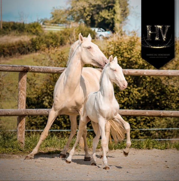 Nasz wspaniały ogier kremowy, urodzony 5 maja 2025 roku z połączenia Ouro JLC i Neyge Des Ocres (po Campeador CSM), jest dostępny do rezerwacji ✨️