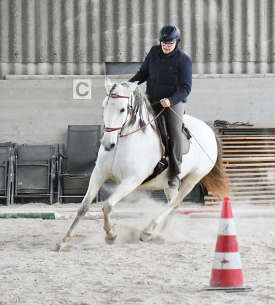 Aus Altersgründen suche ich für meine extrem ausdrucksstarke und mächtige Lusitanostute ein neues 5Sterne Zuhause. Li verfügt über drei sehr raumgreifende und schwungvolle Grundgangarten mit richtig Wumms. Sie ist reell und solide ausgebildet, beherrscht die Seitengänge in Schritt und Trab, hat eine gute Piaffe und eine weiche Passage. Sie hat ihr ganzes Leben in Offenstall/Weidehaltung verbracht, sie ist rangniedrig in der Herde und hat ein tadelloses Sozialverhalten. Sie wird nur in allerbeste Hände abgegeben.