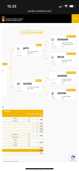 Imelda CL ist hauptsächlich CN-Blut und altes Blut davon. Ihr Vater Jacto (73 Punkte) stammt aus dem Jahr 1991 und hat die berühmte Martini, AD in der Hengstlinie. Ihre Mutter Gaiteira (76 Punkte) wurde 1988 geboren. Sie ist nach Quimono, Antonio Jorge da Fonseca Alcobia, aus dem Jahr 1974. Sie ist piro-positiv. Sie war eine Rettung, als wir sie bekommen haben. Sie wurde nie geritten, da sie eine schwache Hinterhand hat. Dies beeinträchtigt sie im Alltag nicht, sie ist nicht lahm, sondern bevorzugt ihr rechtes Hinterbein. Sie wurde in der Vergangenheit mit Freiarbeit gearbeitet, aber nicht in den letzten Jahren. Wenn sie gearbeitet wird, könnte sie ein Reitpferd für leichte Freizeitaktivitäten werden. Alles hängt von der Arbeit ab. Das Fuchsfohlen im letzten Bild ist ihr Sohn aus dem Jahr 2023. Ihre Farbe ist EeaaCR dn1/dn1 (dorsaler Streifen/primitive Abzeichen). Ich habe mehrmals mit gefrorenem Samen versucht, das funktioniert nicht, sie benötigt frisches Samen. Das hat beim ersten Mal funktioniert. Sie ist eine gute Mutter, die sich um ihr Fohlen kümmert. Sie ist nicht überprotectiv und lässt dich nah herankommen. Sie ist hochintelligent und gibt ein klares Ja/Nein.