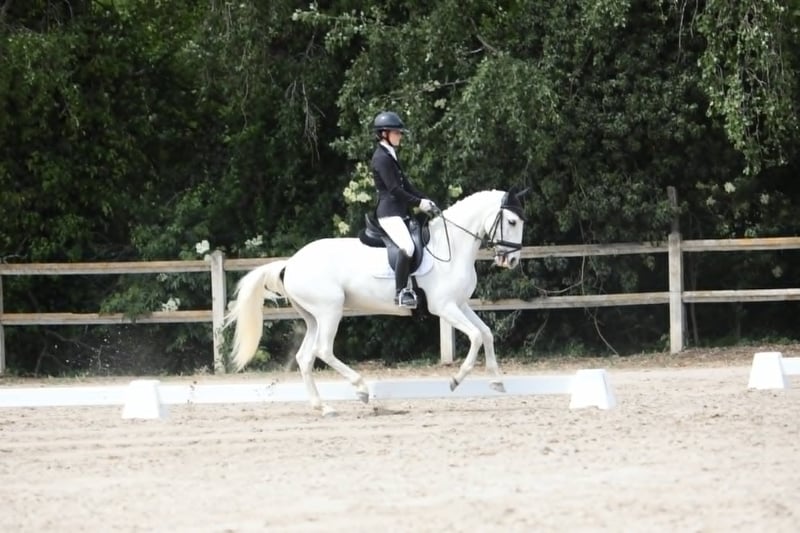 Très bien dressée, elle évolue avec aisance jusqu’au niveau Saint Georges, et maîtrise déjà des éléments de piaffe et passage, démontrant un potentiel intéressant pour le travail rassemblé et les épreuves plus techniques. Ses allures expressives, régulières et souples sont mises en valeur par un bon engagement et une élasticité naturelle. Elle est sortie en compétition depuis ses 4 ans sur les épreuves Jeunes Chevaux, puis Amateur jusqu’à Amateur Élite, montée par une cavalière amateur.