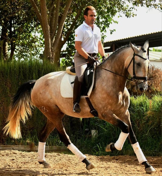 When you see an animal that, at only three and a half years old, behaves like an adult, you can no longer forget it… or, in this case, forget her. This superThe Lusitano mare impresses at first glance: her large and well-proportioned model suggests that she will become a spectacular mare who will undoubtedly attract attention wherever she appears. On a daily basis, she is very sweet and calm, trusts men and is very well educated. She knows how to work on the lunge line, where she shows three good gaits, balance, elasticity and a nice impulsion. When mounted, it provides excellent sensations: She moves forward naturally, with excellent communication skills, is very receptive to help, and very obedient. Without jerks or struggles. She's the kind of mare you enjoy working with because she makes things easier and makes you feel that you're progressing a little more each day. With all this in mind, you'll conclude that it's worth coming to see her in person—because she's very well-rounded in every respect—but that's not all: this mare has a genetic coat study, so she can produce isabella, palomino or perlino foals… And bringing all of that together in a single animal is precisely what makes it unique. At IberHorseWe have been testing horses for over a decade so that you don't have to settle for less. If this mare has awakened something in you, contact us et book an appointment to come and see her in person. I assure you, her will be worth it.