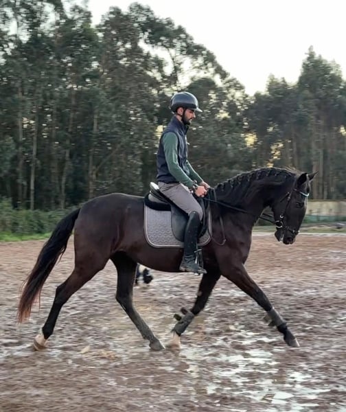Typvolle merrie met eersteklas karakter Wij bieden een uitzonderlijke Lusitano-merrie te koop aan. Kenmerken: - Ras: Lusitano - Geslacht: Merrie - Geboortejaar: 2022 - Kleur: Zwart - Stokmaat: 161 cm, er zullen zeker nog een paar centimeter bij komen Deze getalenteerde merrie valt op door haar elegante verschijning en haar evenwichtige, liefdevolle karakter. Ze heeft al eerste ervaringen op de longe verzameld en toont veelbelovende aanleg voor de dressuur. SAFIRA verenigt twee van de bekendste bloedlijnen van de Lusitanos - de edele LA PERLA-lijn en de krachtige ORTIGÃO COSTA-lijn. Een combinatie die elegantie, rijdbaarheid en uitstraling op het hoogste niveau belooft. Momenteel wordt ze continu verder opgeleid en toont ze zich altijd leergierig, coöperatief en bereid om te presteren. Met haar eerlijke, mensgerichte aard is SAFIRA, ondanks haar potentieel, ook geschikt voor ambitieuze recreatieruiters en gevoelige beginners die een betrouwbaar en liefdevol paard wensen. De prijs ontwikkelt zich overeenkomstig haar opleiding. Onberispelijke röntgenfoto's zijn beschikbaar. Extra foto's en video's kan ik graag op verzoek toesturen.
