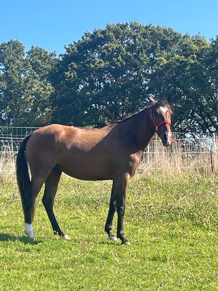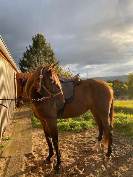 Wir verkaufen unsere hübsche Lusitano-Stute mit blauem Buch. Auf der Stirn trägt sie ein weißes Herz. Sie ist 4 Jahre alt und kam im alter von 2 Jahren von Portugal nach Deutschland. Angeritten wurde Sie im Sommer 2024 und ist aktuell seit 2 Monaten unter Beritt. Sie hat 3 sehr gute, taktreine und raumgreifende Gänge. Ist Schmiede und Verladefromm. Wir können sie uns bestens für Freizeitreiten und Working Equitation vorstellen. Sie ist eine sensible und intelligente Stute, die sehr schnell lernt. Aufgrund ihres aktuellen Ausbildungsstandes ist sie kein Anfängerpferd. Videos vom Beritt versenden wir gerne auf Anfrage. Diesen Sommer hat sie erstmalig mit leichtem Schubbern auf Stiche reagiert. Standort des Pferdes: Groß-Umstadt